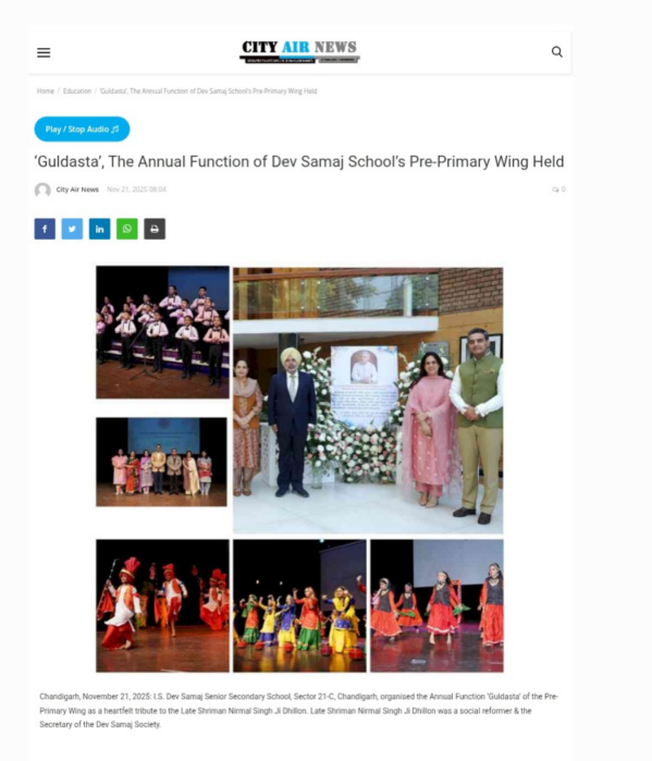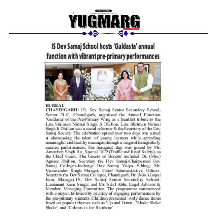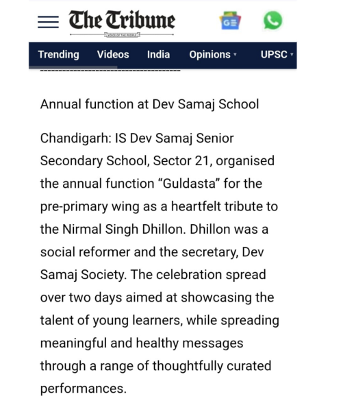 The most venerable Bhagwan Dev Atma founded Dev Samaj in 1887. In his teachings he laid great stress on imparting education to the women, because, he felt that by educating the girl child the whole family gets educated. This being the uppermost thought in his mind he started numerous educational institutions for women. Today there are around 21 Dev Samaj Educational Institutions. This school was established in 1957 in Sector-18 as High School.